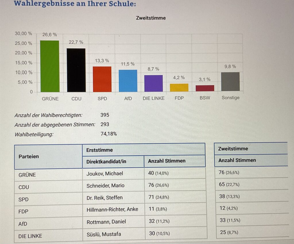 Allgemein 9. März 2026 Simone Casper Keine Kommentare Und das ist das Wahlergebnis der Juniorwahl zur Landtagswahl am Anna-Essinger-Gymnasium