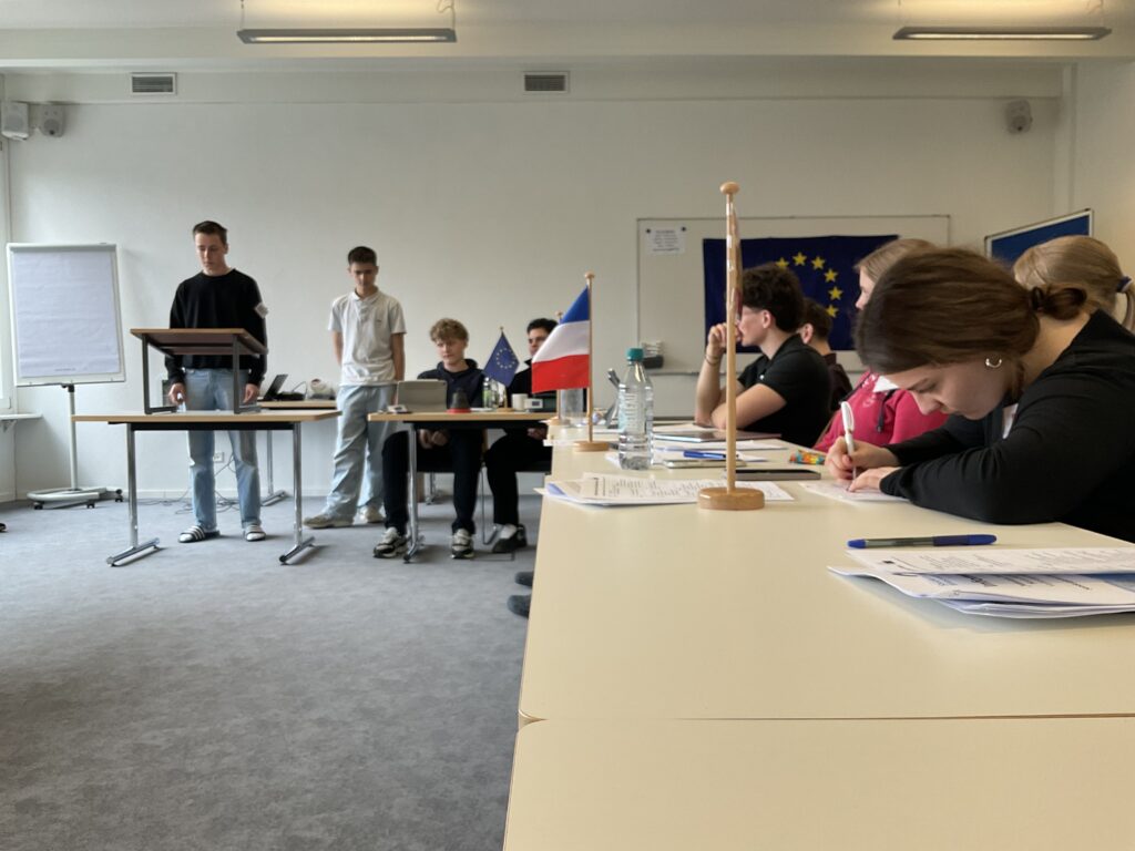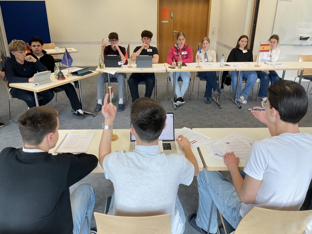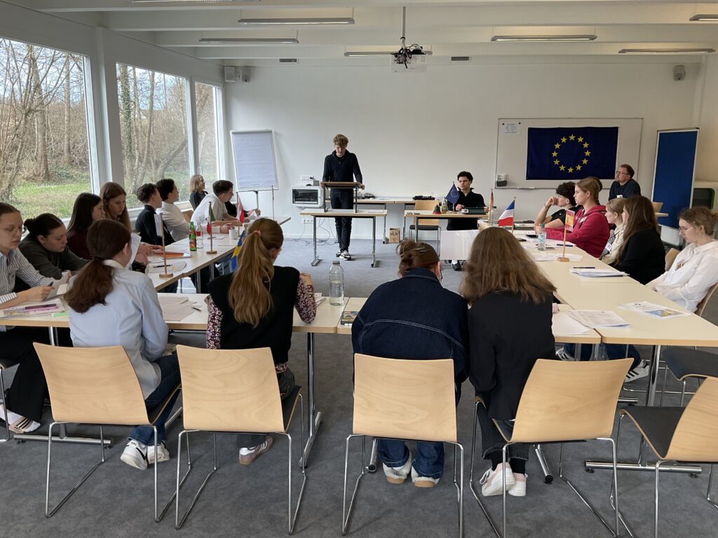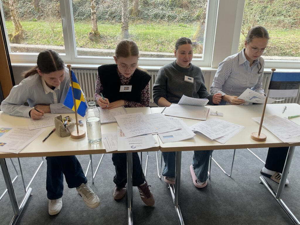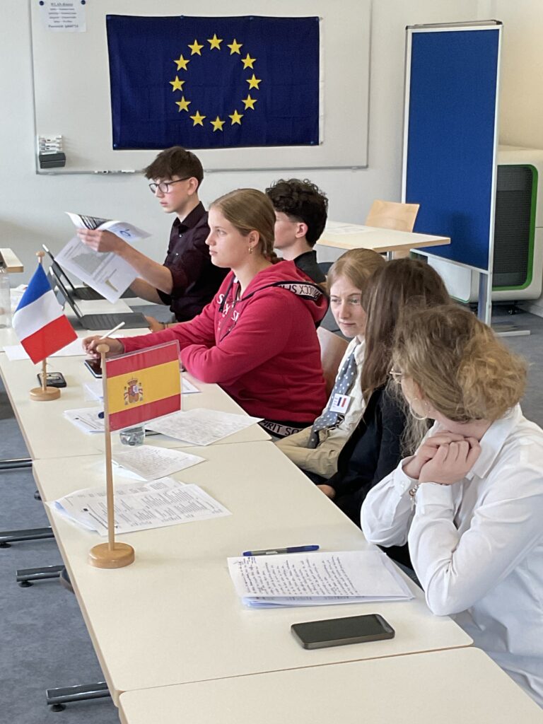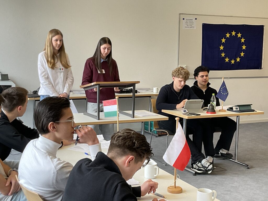 20 Schülerinnen und Schüler der 9. und 10. Klassen näherten sich über ein Escape Game den Institutionen und Abläufen der Europäischen Union. Am zweiten Tag diskutierten sie in einem Planspiel die Mission: Protect Europe im Europäischen Rat als Staats- und Regierungschefs und -chefinnen. Es ging um 10 konkrete aktuelle Themen wie dem Verhältnis zur NATO oder gemeinsame Verteidigungsstrukturen etc. Am letzten Tag wurde der Populismus in Europa genauer betrachtet.