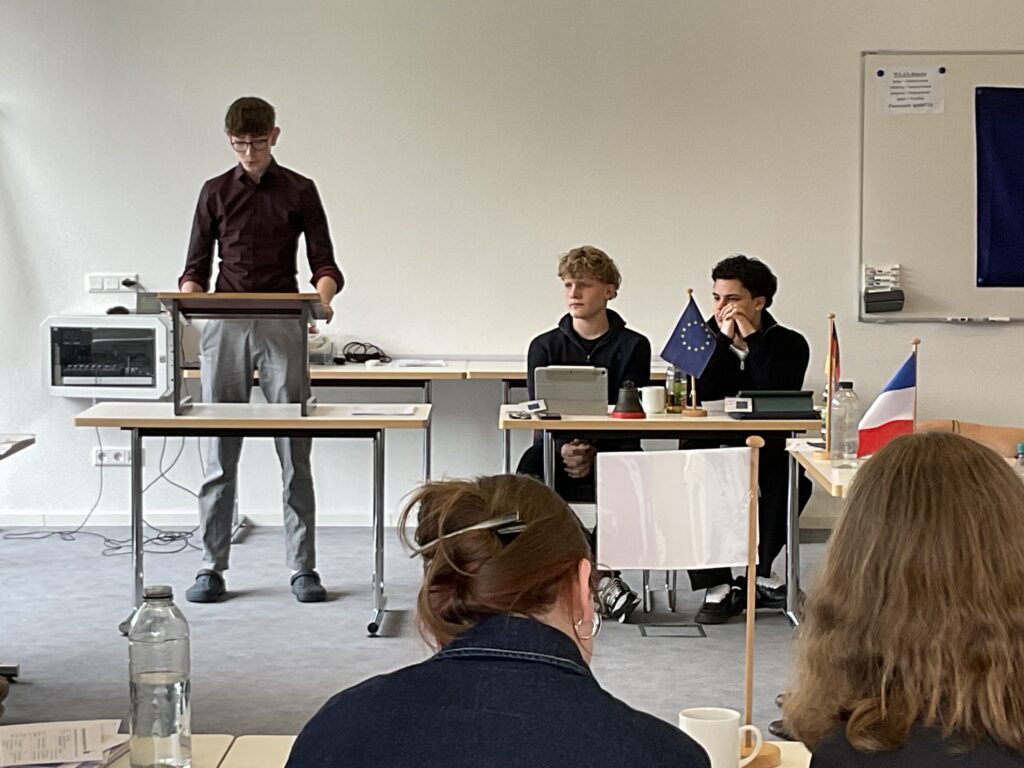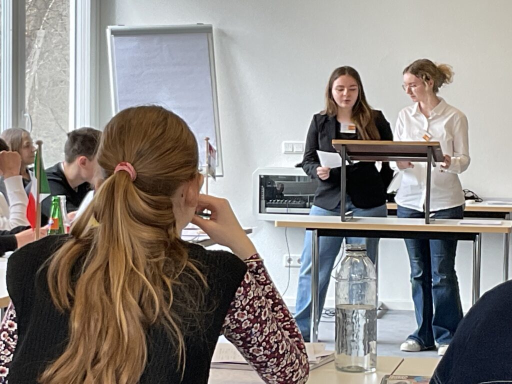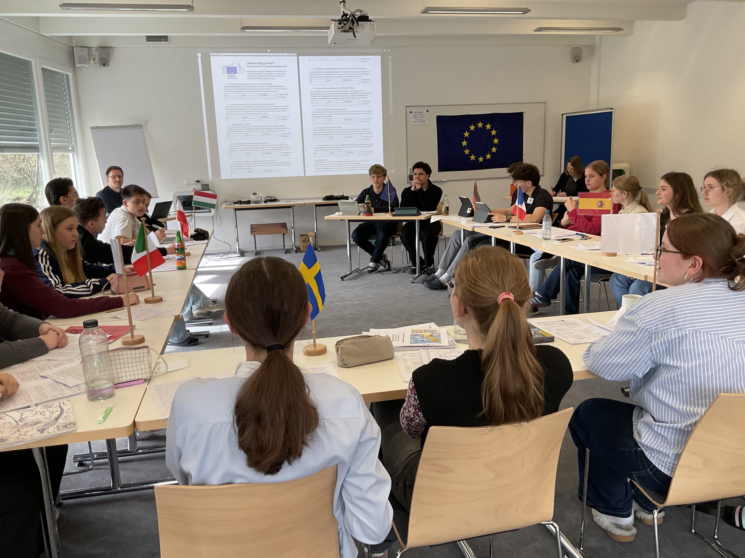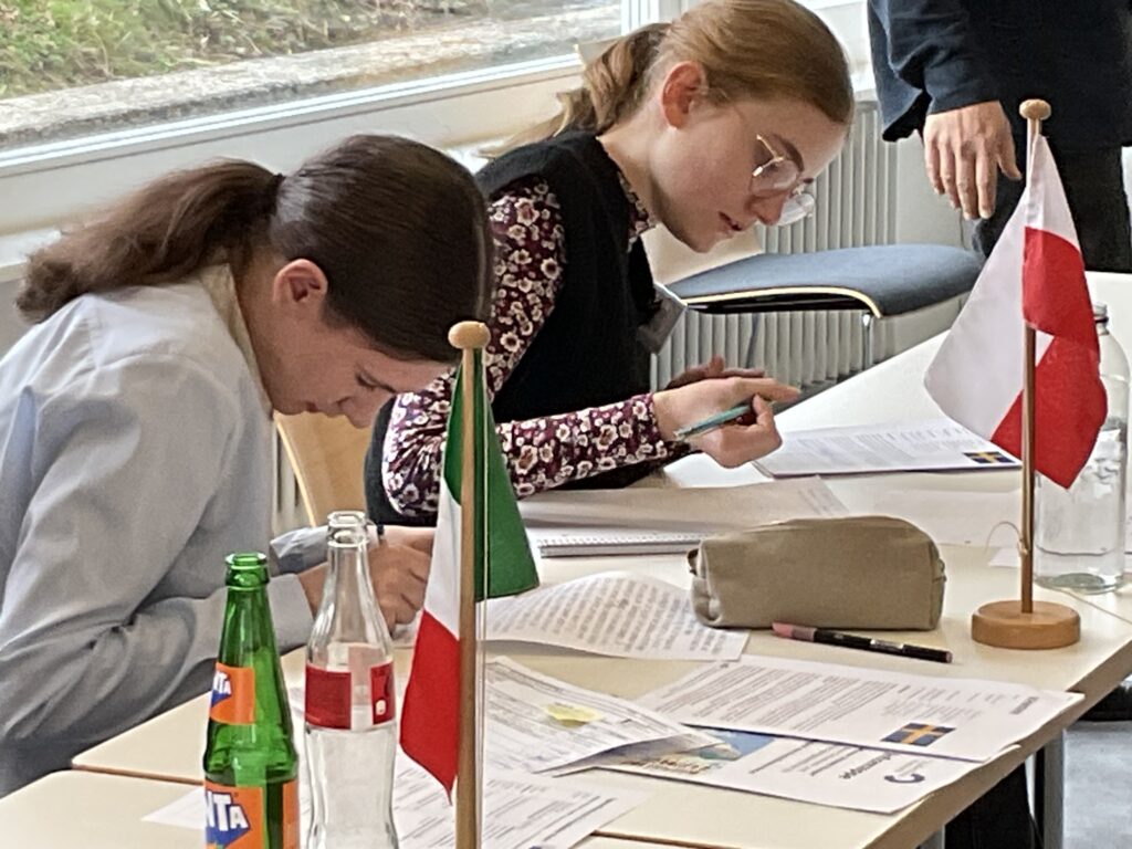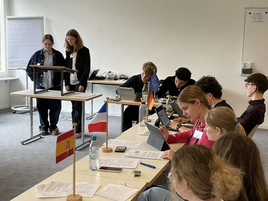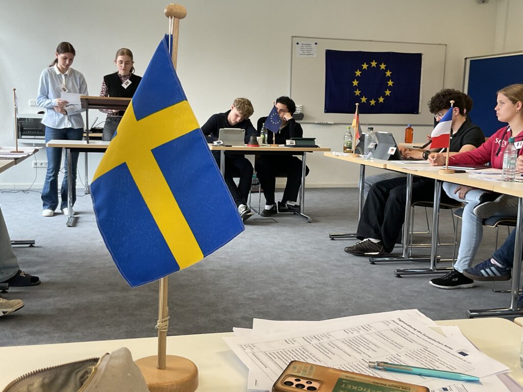 20 Schülerinnen und Schüler der 9. und 10. Klassen näherten sich über ein Escape Game den Institutionen und Abläufen der Europäischen Union. Am zweiten Tag diskutierten sie in einem Planspiel die Mission: Protect Europe im Europäischen Rat als Staats- und Regierungschefs und -chefinnen. Es ging um 10 konkrete aktuelle Themen wie dem Verhältnis zur NATO oder gemeinsame Verteidigungsstrukturen etc. Am letzten Tag wurde der Populismus in Europa genauer betrachtet.
